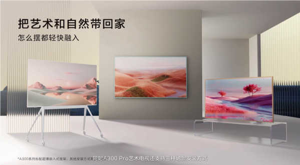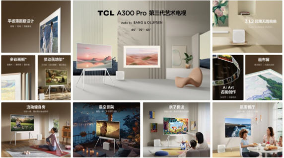 TCL第三代艺术电视A300系列,通过简约超薄设计、灵动场景适配、Ai Art名画创作、顶级音响设备等赋能,让艺术抵达生活,帮助用户轻松享有松弛惬意的生活。