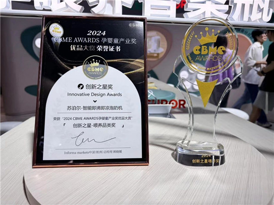 智能即沸即凉泡奶机」荣获2024 CBME优品大赏创新之星奖项。