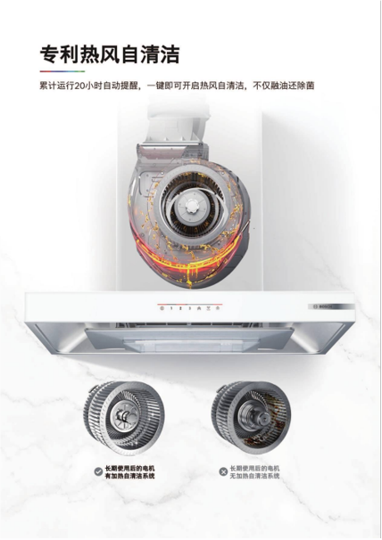 3.根据博西实验室,对比上一代博世油烟机得出;