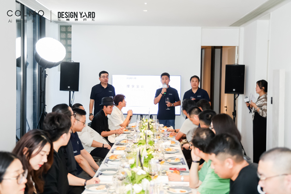 晚宴时刻,随着夕阳的余晖洒落,现场氛围愈加温馨而热烈。晚宴由COLMO高端品牌公司体验馆运营负责人王爱龙开场致辞,他表示对现场嘉宾的感谢与美好祝愿。随着话语落下,现场掌声雷动。随后与COLMO高端品牌公司-装企运营负责人张皓、COLMO杭州运营中心高端品牌部长严辉亮,三位一起举杯,轻触间发出悦耳的清脆声响,标志着这场私宴正式拉开序幕。