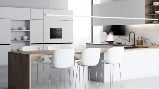 “现在的厨房看起来清爽多了,超薄简约设计的烟机、洗碗机、蒸烤一体机造型时尚,而且都可以完全嵌入到橱柜里,活动空间也变大了,加上产品的智慧互联功能,既美观大方又方便实用,做饭再也不担心手忙脚乱,一切都井井有条。”她说。
