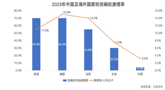 另一方面,目前国内洗碗机渗透率仅为4%,远低于同为品质型厨电的烤箱(30.8%)。若以欧美市场高于50%的渗透率为参照,中国洗碗机市场应在千亿规模。
