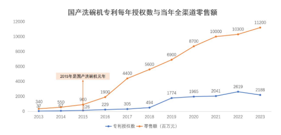 回顾最近十年,中国洗碗机市场每年新增专利授权数量与全渠道零售额呈现了同频上升的趋势。专利授权数的增加,反映了本土头部品牌对于技术创新的高度重视,这些新技术、新功能为市场下一次“起跳”积累了强大的动能。