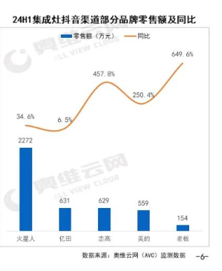 当然,这并是不是个例。奥维云网(AVC)推总数据显示,2024年上半年我国集成灶市场累计零售额、零售量分别为101亿元、114万台,同比分别下滑18.2%、15.2%。