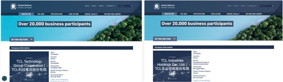 近日,TCL实业、TCL科技正式加入联合国全球契约组织(UNGC),承诺支持联合国全球契约组织关于人权、劳工、环境和反腐败四个领域的《全球契约十项原则》,并且致力于参与促进联合国可持续发展目标的合作项目,为实现联合国目标特别是“可持续发展目标”做出持续贡献。