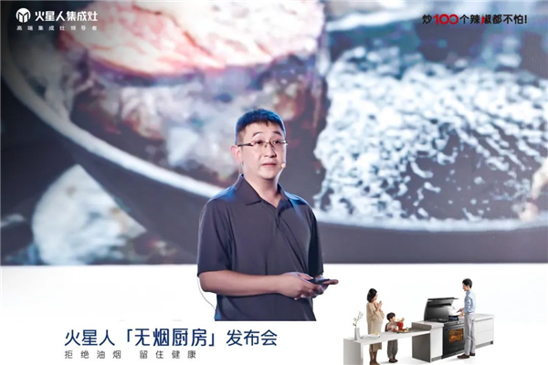 火星人董事长黄卫斌先生深刻的阐述了无烟厨房的创新观念,指出油烟问题并非无解,火星人集成灶已让数百万家庭享受到了无烟厨房的便利与舒适。