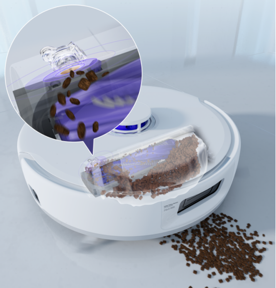云鲸J5吸力提升至15000Pa,拥有领先行业的23AW超强吸功,高速运转的滚刷每分钟可实现扫地4400次,木地板颗粒物去除率高达99%。并首创智能颗粒感应系统,颗粒物识别能力达毫米级,可自主识别颗粒物大小及脏污程度,主动调节清扫策略,清扫全程不遗漏更干净。为了避免大吸力带来的大噪音问题,云鲸J5搭载全新自研风机系统,风机叶轮、电机则采用双面平衡工艺,整机配备硬件级智能降噪技术,标准档位下清扫噪音低至56dB。