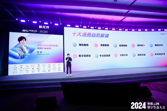 中国家电市场在技术进步和市场需求的推动下,正在经历快速发展和变革,AI技术的深入应用、渠道拓展和营销变化,为产品的市场新生态提供了更多可能性。在消费趋势与产品创新方面,大会发布了《奥维云网2024年度趋势产品报告》,对“绿色高效、深度智能、回调式焕新、进阶嵌入、精致依旧、真全面解放、专业级健康、治愈色系、基础突破、系统级舒适”十大趋势进行了详细解读,并结合企业实践案例,对细分趋势进行了更为深入且具体的剖析,展示了这些趋势如何在家电行业中落地生根,引领产品创新与消费升级的新方向。