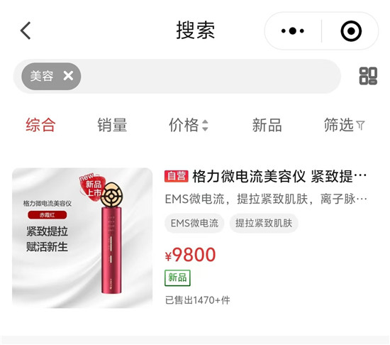 目前,格力美容仪产品已经在微信小程序“格力董明珠店”上架,显示累计销售1470台。