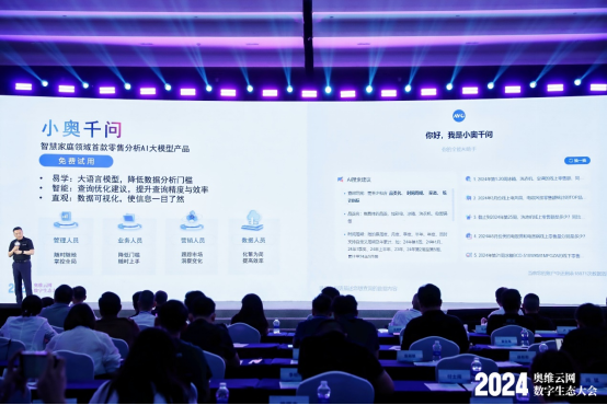 8月22日,在杭州召开的奥维云网(AVC)2024数字生态大会上,奥维云网(AVC)对外正式发布了智慧家庭领域首款零售数据分析大模型——“小奥千问”,一款可以直接实现数据查询的智能AI工具。