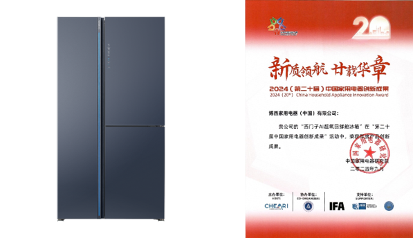 另一方面,作为博西家电旗下另一主力品牌西门子家电,其带来的AI超氧回鲜舱冰箱凭借先进的保鲜技术脱颖而出,获得“产品创新成果”奖。这款冰箱集美学设计和创新技术于一身,拥有多项突破性功能,其中RST回鲜解冻舱能够在10分钟快速均匀解冻肉类,保留原鲜肌理口感,并抑制细菌生长,避免血水渗出。冰箱搭载的eNose智感恒鲜杀菌系统,对冰箱内部24小时实时监测箱内新鲜状况,自动去除99.9%细菌和病毒,去除92%异味1,保持食材新鲜。特有的真空零度鲜藏抽屉以0.8pa真空低氧低温环境,显著减少食材营养价值流失。该产品不仅大幅提升了食材的保鲜效果,更在绿色环保方面树立了行业标杆,能效1级的西门子AI超氧回鲜舱冰箱以其出色的能效表现和环保材料的使用,彰显了博西家电对可持续发展的坚定承诺,产品本身使用的塑料,金属部件和外包装的材料大部分(70%~80%)严格遵照IEC TR 62635再循环能力国际标准,都可以循环利用,减少浪费和污染环境,产品采用性能优异的新型碳氢制冷剂R600,这种新型混合制冷剂ODP(臭氧消耗潜能值)为零,而且具有极低的GWP(全球变暖潜能值),对臭氧层没有破坏作用。