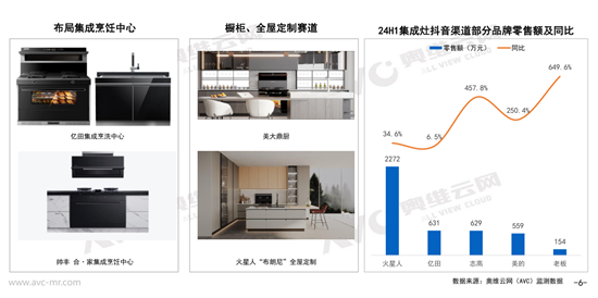 第二、寻找新的增长级。集成灶企业需要持续布局多元渠道,如抖音等新兴渠道;奥维云网(AVC)监测数据显示,多品牌在2024年上半年抖音渠道的集成灶销售额同比实现正增长。