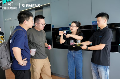 除了视觉体验,活动还特别设置了丰富的互动环节。在现场,观众可以加入“城市冰饮”计划,在五款特色饮品中任意选择、免费品尝。此外,“AI魔法厨房”环节同样备受关注。在专业培训师的指导下,现场观众亲自参与制作芒果布丁、抹茶曲奇饼干、吮指烤鸡和香辣灯影藕片等美食;通过使用西门子AI蒸烤套装,体验智能家电所带来的便捷生活。