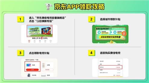 那么,康佳电视线上以旧换新补贴怎么领、怎么下单使用呢?很简单,四步走即可搞定。