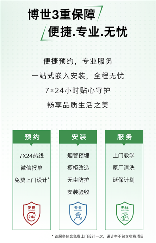 除优惠补贴、优质产品外,博世家电更以“3重保障”专业服务,为消费者家电换新全过程保驾护航——“3重保障”包含便捷预约、专业安装和无忧服务,无论是免费上门设计、橱柜改造或是上门使用教学,实现售前售中售后专业服务全覆盖,让消费者在家电换新过程中的每个环节都能获得贴心的服务。