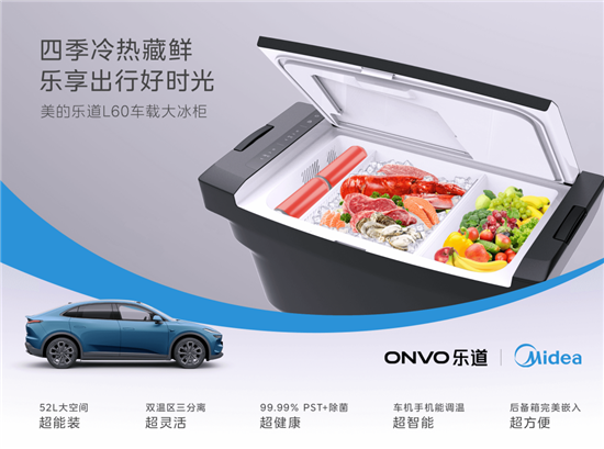值得特别注意的是,该冰箱是美的与车企共创的一款产品。乐道是蔚来汽车的子品牌,品牌名源自“合家欢乐,持家有道”,是一个主要针对家庭用户的品牌,此次发布的首款车型的很多设计都充分考虑到家庭出行的需求,为一个家庭“移动的家”提供更多的舒适与快乐,创造更好的使用体验。美的集团创立50多年来也始终以为用户创造更美好的生活为出发点,秉持科技服务于用户的理念,不断推动技术与产品创新。理念上的共识让双方共创了这款舒适性与功能性兼备的车载冰箱,共创的创新体验主要有以下三点:一是冰箱与车身结构高度贴合,隐藏内嵌其中,不占用车内使用空间;二是车内设有冰箱专用通风通道,解决业内传统冰箱散热差、噪音大的痛点,实现车内静音零打扰;三是冰箱与车机系统打通,在保证原车体验的前提下实现了功能的延展。
