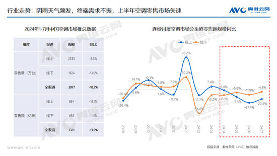 出货端表现平平,零售端则是大幅下探。综合分析看,2024冷年空调零售市场主要呈现以下几个特征: