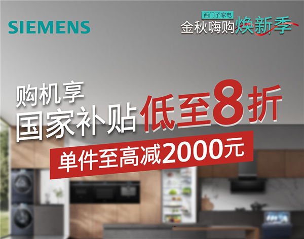 除了提供高品质的换新选择,博西家电近期也以多样的活动为家电换新助力。以博西家电旗下品牌西门子家电为例,政策发布以来西门子家电紧跟市场脉搏,应运启幕“金秋嗨购焕新季”活动。针对购买指定品类新机的消费者,即可享受国家补贴之外的额外换新补贴。为护航消费者的换新之旅,除了换新津贴西门子家电还提供了4项针对消费者的“以旧换新”专属服务:上门水电定位、橱柜改造、烟机改造和上门教学,全方位解决消费者换新过程中的痛点与难点。参与活动的消费者将享受免费安装防烟宝和预埋烟管的服务,确保厨房环境更加安全健康。不仅如此,消费者还能在零风险的情况下亲身感受洗碗机100天和干衣机99天的试用体验。