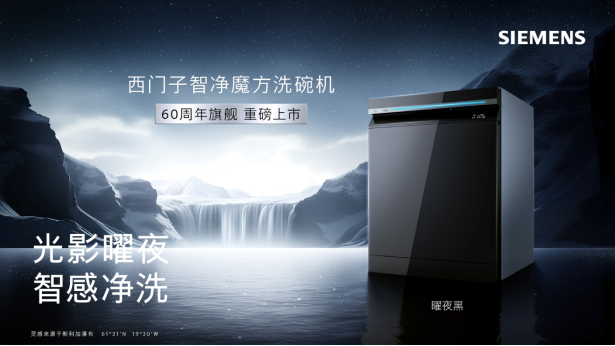 在烘干方面,西门子家电的专利技术晶蕾烘干已全面升级至5.0时代。该技术将最高温度从80°提升至110°,通过密闭热烘显著提高了烘干效率,确保餐具在清洗后能够迅速干燥,烘干指数提升至1.24,优于国家一级标准干燥指数13%。除此之外,为了更好地迎合消费者现代家居审美需求,西门子智净魔方洗碗机的瀑布式门板设计充满未来感,通过曜钢黑金属拉丝材质,增强了产品的耐用性和美观度。搭配西门子家电品牌之光的智能显示功能,使得智净魔方洗碗机不仅是一款功能强大的家电产品,更是一件提升厨房美学的艺术品。