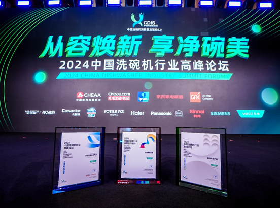 凭借卓越的创新实力和品牌表现,华帝再度揽获三项大奖:华帝洗碗机iD3000入选“2024中国洗碗机行业杰出渠道表现产品”,洗碗机iD1000被评为“值得购买产品”;在中国家电网举办的2024中国洗碗机行业消费普及活动中,华帝被评为“卓越贡献品牌”。