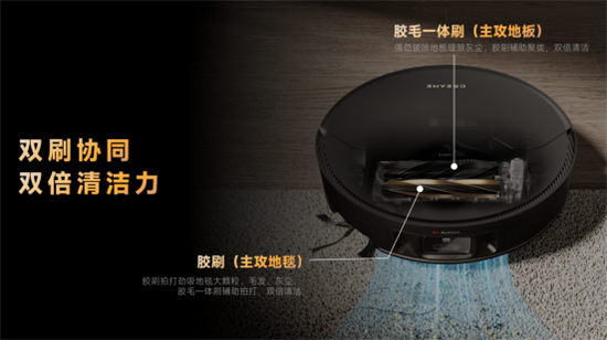 针对家庭清洁中的毛发缠绕问题,追觅X50系列创新性地采用了混合式全场景0缠毛双滚刷系统。这一系统集胶刷与胶毛一体刷的优势于一体,通过双刷双向内旋聚拢的方式,实现了双倍清洁力。无论是地板缝隙的灰尘、瓷砖上的细小颗粒,还是地毯深处的顽固污渍,都能被轻松清除。