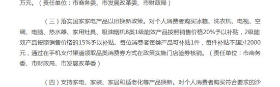 在国家措施中提到的八类品类的补贴之外,上海的《方案》中,明确标明的品类还有扫地机器人、吸尘器、空气净化器等小家电产品;江苏则标注出空气净化器、微波炉(含一体机)、电磁炉、电饭煲(含电压力锅)、电风扇、家用冰吧、洗碗机、净水器、智能马桶(含马桶盖)等;浙江则是新增智能桌椅(含智能按摩椅、智能沙发)、智能健身设备、智能语音设施(含智能音箱)、智能服务机器人(含智能扫地机、拖地机)、智能洗碗机、智能蒸(烤)机等智能设备;湖南还提到了洗碗机、空气净化器、吸尘器、扫(拖)地机器人、微波炉、咖啡机和面包机等品质生活需求……