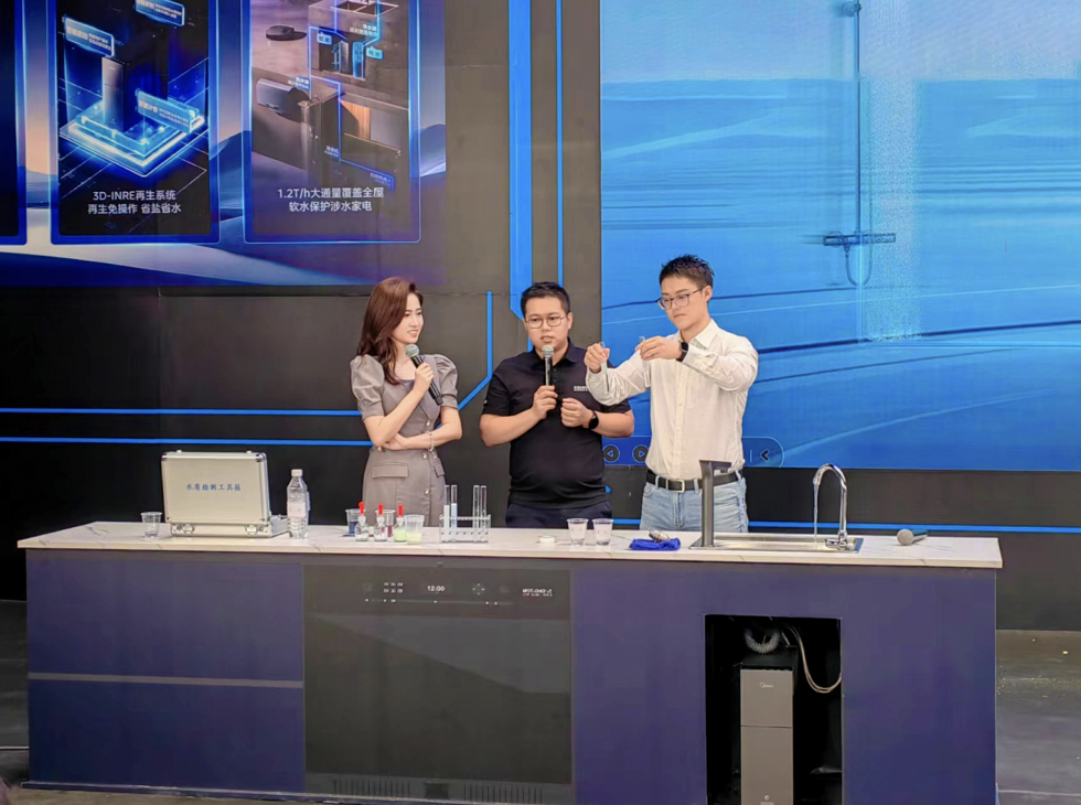 发布会现场,美的通过一系列精心设计的实验,直观展示了软水和硬水的差异及其对日常生活的影响。