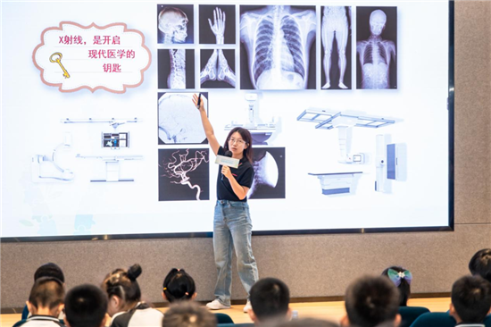 新鲜的内容引发了同学们的兴趣,有学生提问到:“X射线为什么有辐射?不同的检查设备有什么区别?”王雅洁说,常规检查所产生的电离辐射剂量都在安全范围之内,同样的东西用不同设备照出的图像并不一样。
