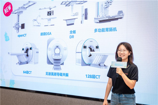 “在没有伤口的情况下,医生怎么检查我们身体内的健康情况?”随后,美的科技新星、万东医疗MR产品部软件研发工程师王雅洁从X射线入手,用通俗易懂的方式让学生们了解到X射线成像、磁共振成像的原理,并对最新的无液氦成像技术,进行了有趣的科普。