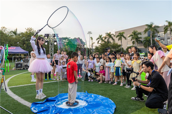 同时,活动现场还设置了美食摊位和手工摊位,让科技人员及其家人在品尝美食的同时,学习非遗漆扇、中国糖画等传统技艺。此外,一场别开生面的森林音乐会也给活动增添了浓厚的艺术氛围,梦幻泡泡秀、科学音乐实验秀等更是让现场惊喜连连、笑声不断。