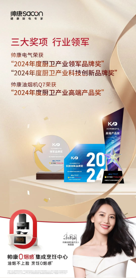 近日,以“破卷纾困 解构新质”为主题的2024(第六届)中国厨卫产业创新发展峰会于上海盛大召开。帅康电气在此次评选中脱颖而出,荣获了“2024年度厨卫产业领军品牌奖”和“2024年度厨卫产业科技创新品牌奖”两项大奖,彰显了其在行业内的卓越地位。同时,帅康油烟机Q7凭借其出色的性能和品质,荣获“2024年度厨卫产业高端产品奖”。