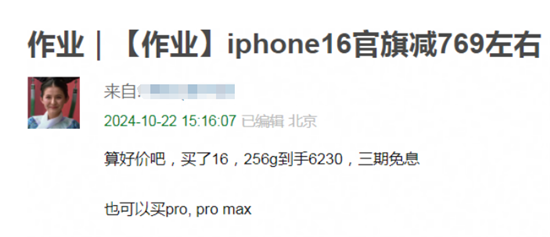 在各大购物网站上,有网友分享着天猫平台的优惠信息。据网友透露,iPhone16官方旗舰店可以使用淘宝优惠券叠加银行卡付款的优惠活动,这种操作下iPhone16的256G版本价格降至了6230元,而同样的优惠也适用于iPhone16的其他款式。