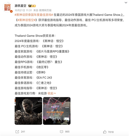 黑神话:悟空》可谓大放异彩,斩获了多个奖项。作为当下最为热门的国产3A大作,它成功走出国门,在全球游戏舞台展现出独特的魅力,身为忠实粉丝的我,真是激动又自豪。