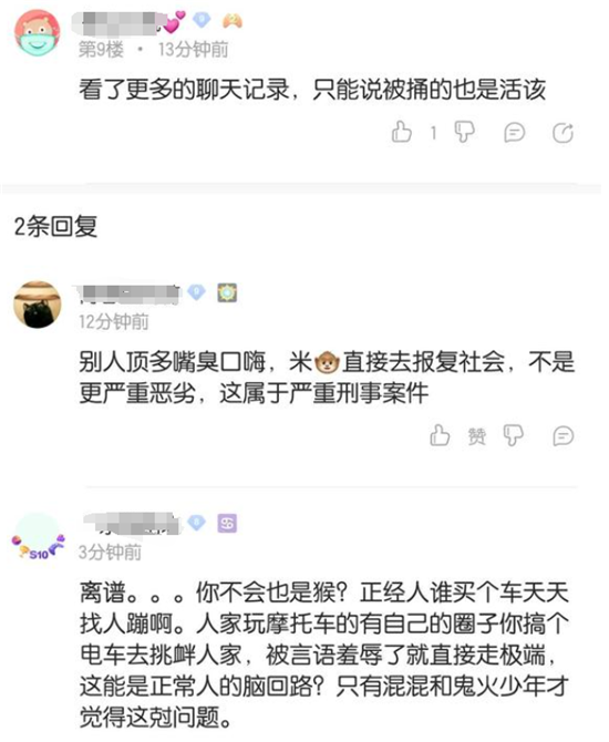 但到了25日,部分平台舆论的风向却开始变得魔幻。因为事件起是关于小米SU7的争论,并且嫌疑人最显著的标签是小米SU7车主,因而在多平台传播时,大家都不约而同地选择了“小米SU7”作为标签,“小米SU7车主来代称”嫌疑人,引发了部分网友的不满,表达一些诸如“受害者活该”的言论,更有甚者阴谋该事件在传播速度、广度上,是小米“友商”“作祟”。发展到后来,评论区甚至直接出现了“米猴”等小米粉丝的黑称,以及一些极端不理智的攻击性言论,一度波及华为粉丝“海军”。