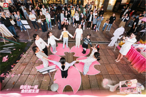 在熙熙攘攘的天一广场,映入眼帘的焦点是以SAKURA樱花品牌标志性的粉色与秋日金色为主色调打造的大篷车。