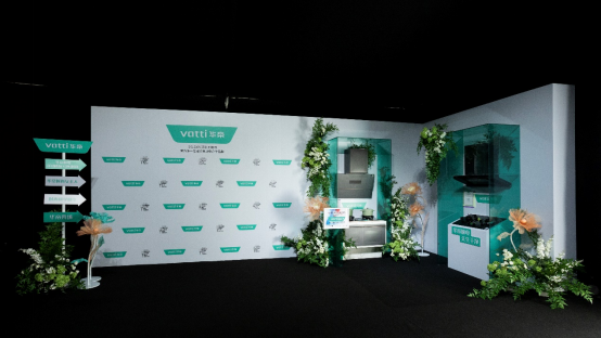 走进展区,内部的空间设计十分出人意料。不同于还原传统厨房空间的设计,华帝展示的厨电产品如一件件艺术品,放在绿色的玻璃格子中。周围簇拥着素雅的白花和绿植,营造出鲜活的自然气息,让人由衷产生被治愈的感觉。