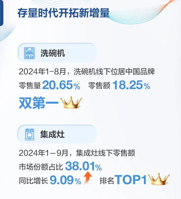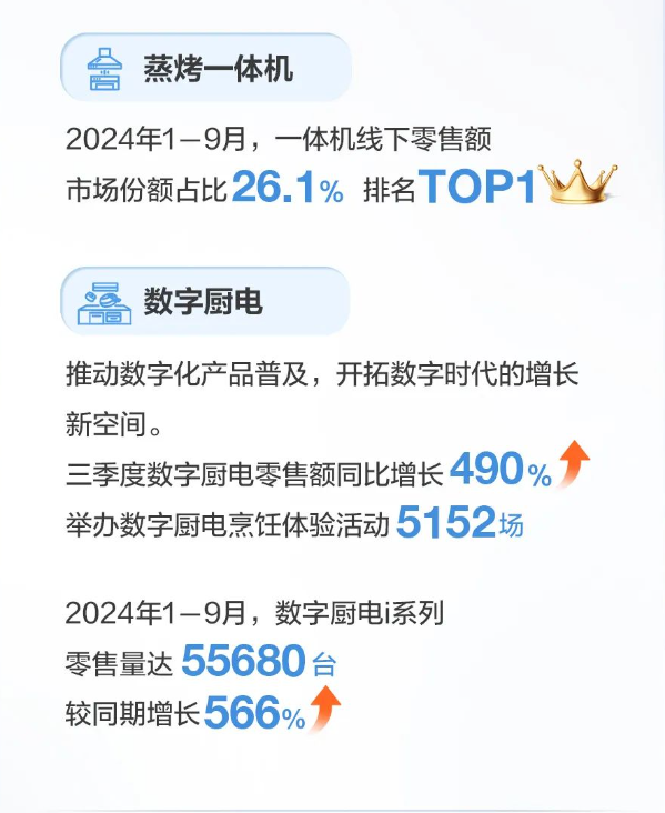 品类创新方面,首创蒸烤炸焗一体机品类,多功能合一,解锁花样烹饪新体验。新品上市零售量突破10000台!致力于打造更适合中国家庭的洗碗机,发布洗消一体机S2系列,是行业首创的双擎消毒0菌洗碗机,达到专业医护级消毒水准,行业唯一实现0菌消毒。