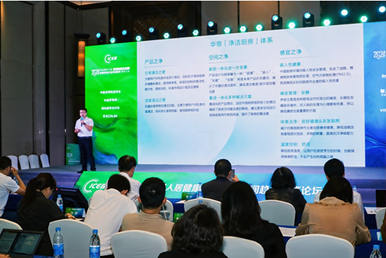 华帝股份产品管理中心总监姚永在主题演讲中指出,中国厨房仍存在4个痛点,即油烟重、空间小、环境热和空气不流通,这与消费者期待的理想厨房有很大差距。理想的烹饪空间是安全、健康和高效的,包含空间设计、体感、空气和环境健康等多个维度。华帝“净洁厨房”体系从产品、空间和感官3个维度全面升级中国厨房,通过“烹饪空间空气管理技术”“智感恒吸3.0技术”“综合降噪技术”等创新的专利技术,最大程度守护用户呼吸健康,同时达到烹饪时温度舒适、体表洁净和静音的感官享受。
