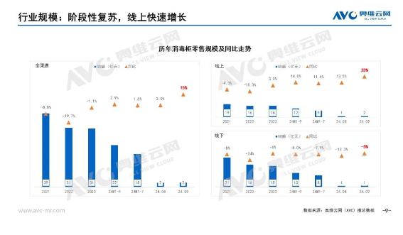 局部地区依旧换新政策品类增加涉及到消毒柜,对销售拉动作用明显,奥维云网(AVC)监测数据显示,2024年9月我国线上消毒柜零售额同比增长33%。