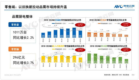 伴随国家以旧换新政策的持续推进,消洗嵌净四大品需品类进入了多地的以旧换新名单,2024年Q3厨卫品需品类(洗碗机、消毒柜、嵌入式微蒸烤、净水器)市场呈现明显的上行态势。奥维云网(AVC)推总数据显示,品需厨电前三季度累计零售额为296亿元,同比增长3.7%;从换新效果看,9月四大品需品类同比增速均超过15%,其中洗碗机和净水器市场同比增速超过25%,涨势强劲。