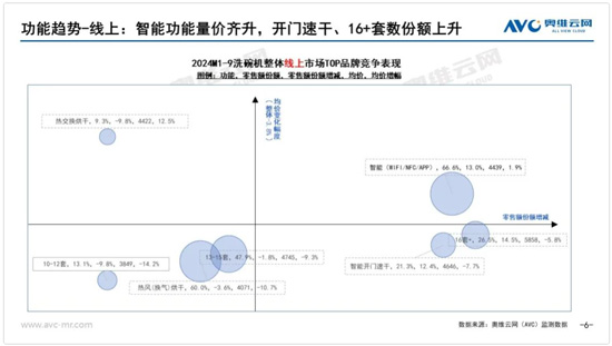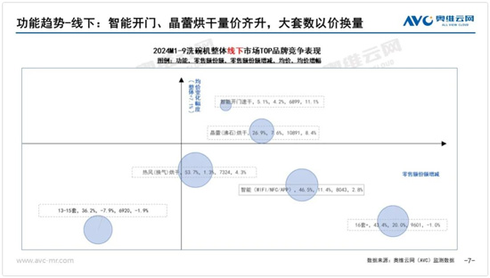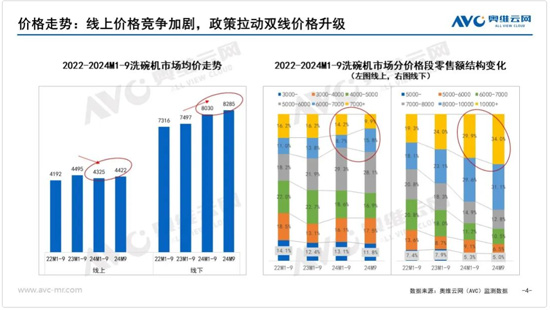 从价格上看,虽然今年线上市场整体出现一定的价格降级趋势,但是以旧换新政策对9月市场的价格结构拉动明显。奥维云网(AVC)监测数据显示,2024年9月,洗碗机线上市场6000元以上价格段零售额占比为25.7%,较今年1-9月整体增长2.8个百分点;洗碗机线下市场10000元以上价格段零售额占比为34.0%,较今年1-9月整体增长4.1个百分点。以旧换新政策的实施拉动双线市场的价格升级。