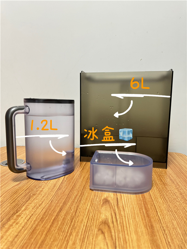 此外,台式净饮机UT05配备了6升原水箱,如此大的原水箱傲视同类,减少加水频次,轻松应对多口之家需求。1.2升的纯水箱则为咖啡机加水或是厨房烹饪用水,提供了极大便利。还有个便捷冰盒,夏天来了,想喝点冰饮,冰块也是随取随用。