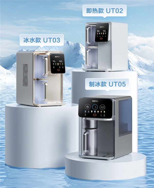 当然,苏泊尔星澜系列台式净饮机并不止步于UT05。除了具备制冰功能的UT05外,还有同样引人注目的冰水款UT03以及即热款UT02。无论是偏好冰爽口感,还是追求即饮热水,亦或是其他方面的饮水需求,苏泊尔都能为提供最便捷、最适合的解决方案。