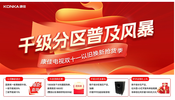 即日起至11月24日,康佳电视全线启动“千级分区普及风暴”钜惠活动,旨在通过线上线下全渠道推广,全力加速千级分区电视的普及进程,力求为消费者带来前所未有的高品质享受与绝佳购物体验。