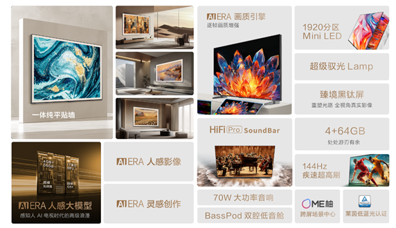 在AI技术的加持下,R8s电视搭载了AI ERA人感影像引擎和AI ERA画质引擎,基于用户真实感知,对海量数据进行了深度训练,并精研数十项AI先进算法,如AI超分辨率增强、AI高速清晰增强、AI局部细节增强等,这些算法能够智能识别并逐帧调校画面细微参数,使得视觉张力扑面而来,质感影像超越所见。值得一提的是,这两大引擎技术在本地端侧轻量部署,无需网络连接也能实时运行。此外,为了给用户带来旗舰级的顺滑观影与游戏体验,R8s电视还拥有144Hz智能解码模式,无论是紧张刺激的电影场景,还是激动人心的游戏对决,R8s电视都能轻松胜任,让每一眼都成为酣畅淋漓的视觉盛宴。