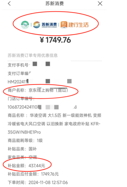因为江苏省国家补贴的方式比较小众,仅可以通过建行生活进行线上和线下的兑现。并且,非常致命的是,目前大多数消费者依旧以为江苏的以旧换新国补仅苏宁可用,并不知晓京东跳转建行生活支付可以减免国补部分的金额。
