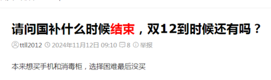 在11月12日时,淘宝和京东的双11活动基本都已经结束了,而此时也有消费者开始在购物社区上接连发问:双12还会这么便宜吗?明年还会有国补吗?明年还能有企业让利、平台优惠、国家补贴的好价吗?