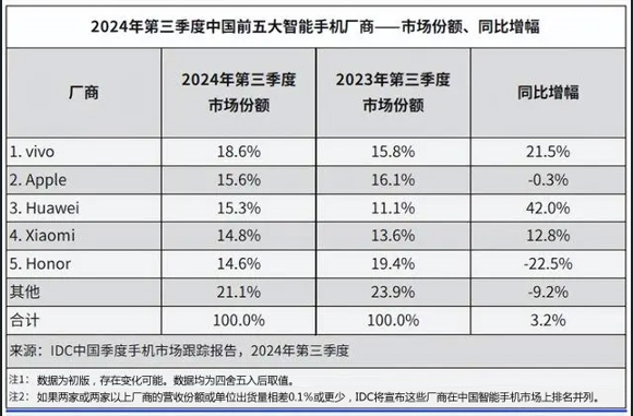 小米手机高端化策略明显,今年7月,小米发布了旗下首款小折叠屏手机MIX Flip,IDC数据显示,2024年三季度小米以17.2%的市场份额排名第三,Mix Flip成为小米进入折叠屏手机前三的关键。同时,IDC表示,小米坚持打造具备自身特点的产品,不但坚持为低收入人群带来更好的产品,在高端市场上也不断突破。