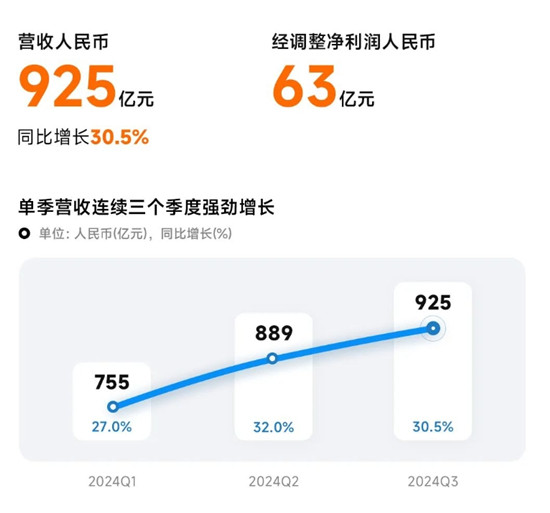 在第三季度,智能电动汽车业务贡献了95亿元的收入,并成功交付了39790辆SU7系列新车。尽管该业务在经调整后呈现15亿元的净亏损,即单车亏损约3.77万元,但与二季度相比,单车亏损已显著减少至6万元的一半左右,显示出亏损正在逐步收窄。