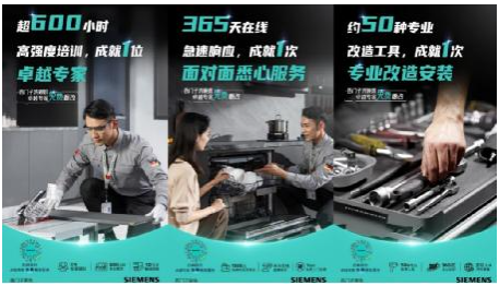 厨房的理想体验离不开细致的设计与高标准的安装。为了解决消费者的后顾之忧,西门子家电的免费服务不仅涵盖产品选购,还包括从水电改造到安装调试的全流程服务,消费者只需要拨打电话即可享受西门子家电3重一站焕新服务: